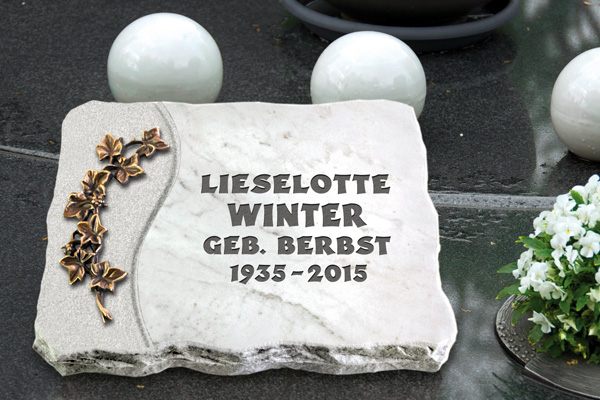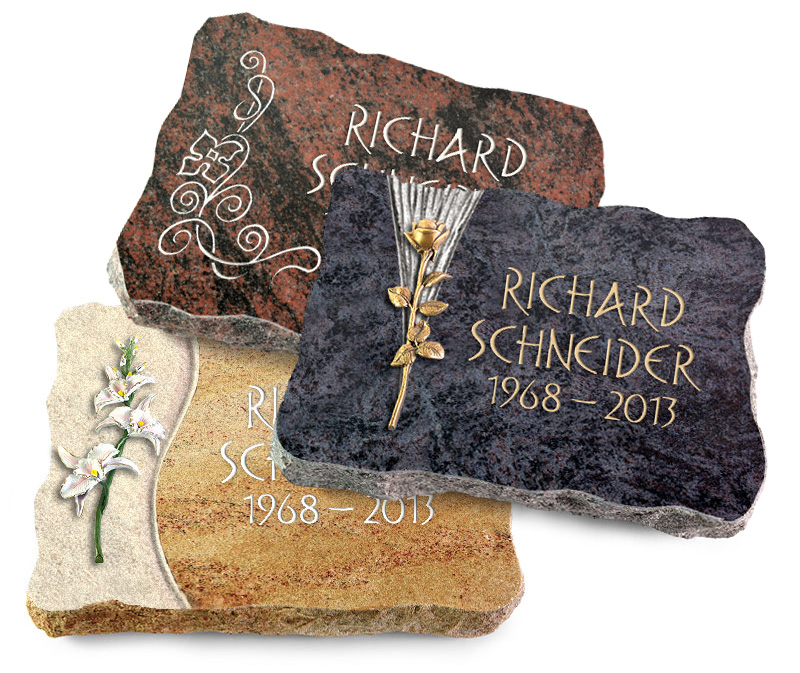 Grabplatten werden oft als Massenware produziert und dann billig mit Lasergravur im Internet verkauft und es erinnert hier nur noch die persönliche Inschrift an die verstorbene Person. Jedoch sind die Kosten handwerklich gefertigte Inschriften von Bildhauern nicht selten nur unwesentlich höher als Grabplatten aus industrieller Großproduktion. Unsere Steinmetzmeister fertigen romantische oder rustikale Grabplatte nach Ihren Wünschen und denen des Verstorbenen individuell. Was die Grabplatte dann genau kostet, lässt sich nicht pauschal sagen, da dies von mehreren Faktoren abhängt. Je aufwändiger die Grabplatte bearbeitet werden muss, desto höher fallen auch die Kosten aus. Ein Grabplatte-Preisvergleich lohnt sich in jedem Fall. In unserem Onlineshop bieten wir Ihnen ein breites Sortiment anspruchsvoll gestalteter und hochwertiger Grabplatten als Wiesengrabsteine zu günstigen Preisen an. Da wir in Bezug auf die Verkaufsfläche und das Personal Kosten einsparen können, geben wir diesen Preisvorteil gern an unsere Kunden weiter. Neben unseren vielfältigen Grabplatten können Sie ebenso hochwertige Grabsteine in Buchform für Ihr Familiengrab sowie Kindergrabsteine und Tiergrabsteine und exklusiven Grabschmuck bei uns zu günstigen Preisen online bestellen und kaufen.